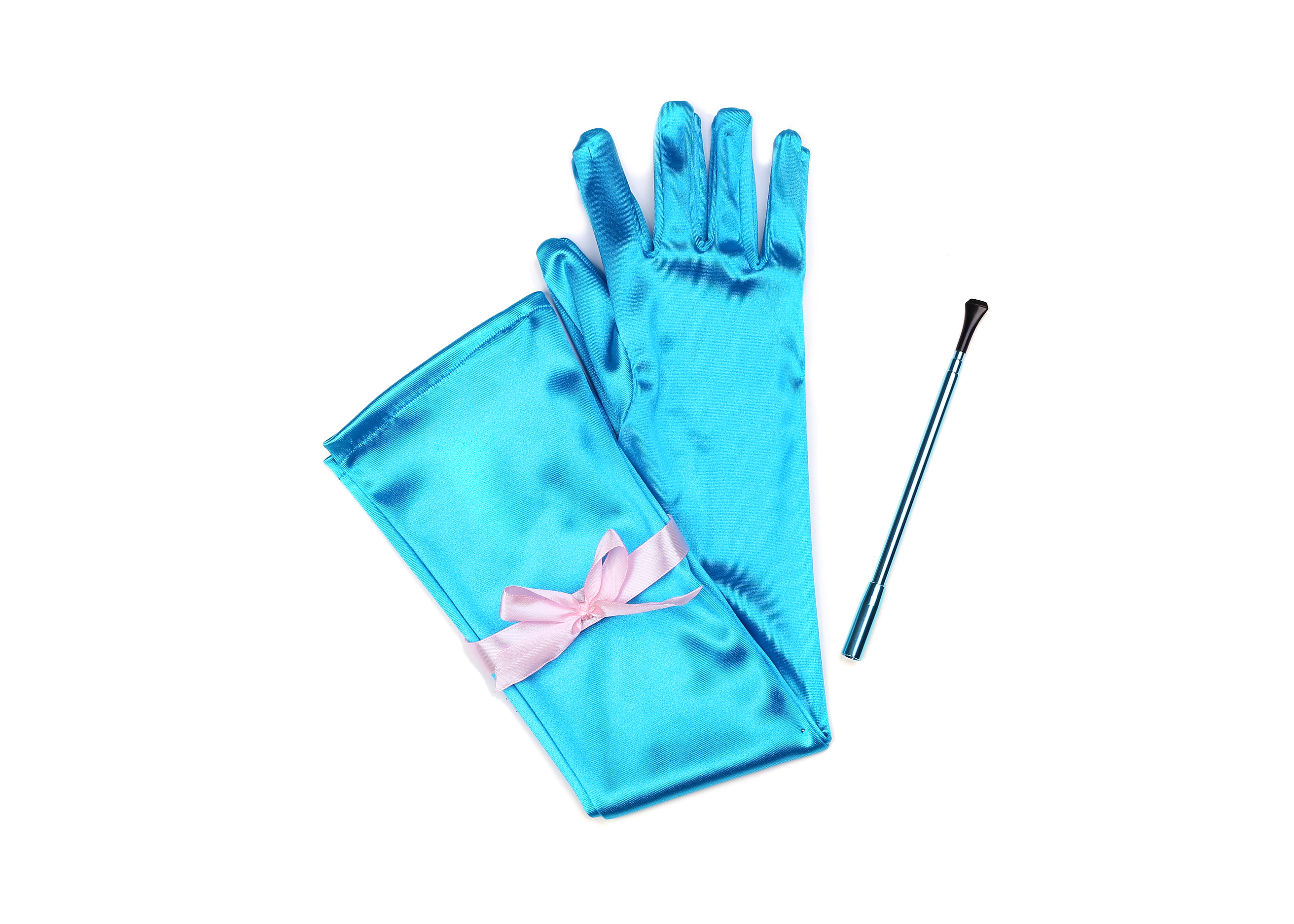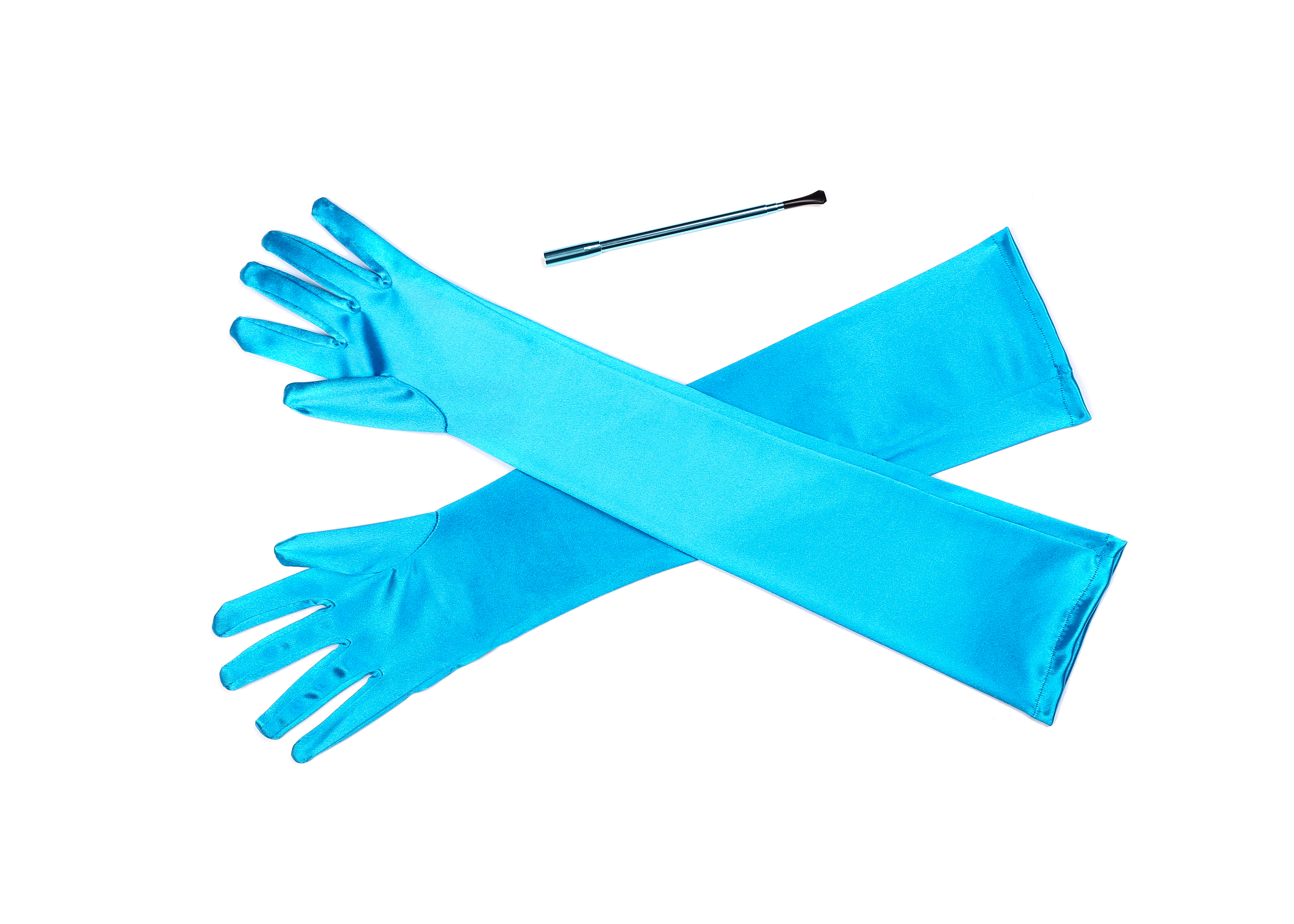 Bright Turquoise Extendable Cigarette Holder and Long Satin Glove Costume Accessory Set