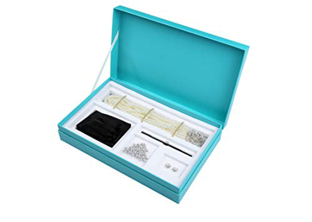 Add the style and grace of Audrey Hepburn as Holly Golightly to complete your Audrey costume assemble with this exquisite accessories set. Each piece is inspired from the iconic black dress attire as featured in the classic film Breakfast at Tiffany's. Perfect to complete your black dress assemble for halloween or any costume party.