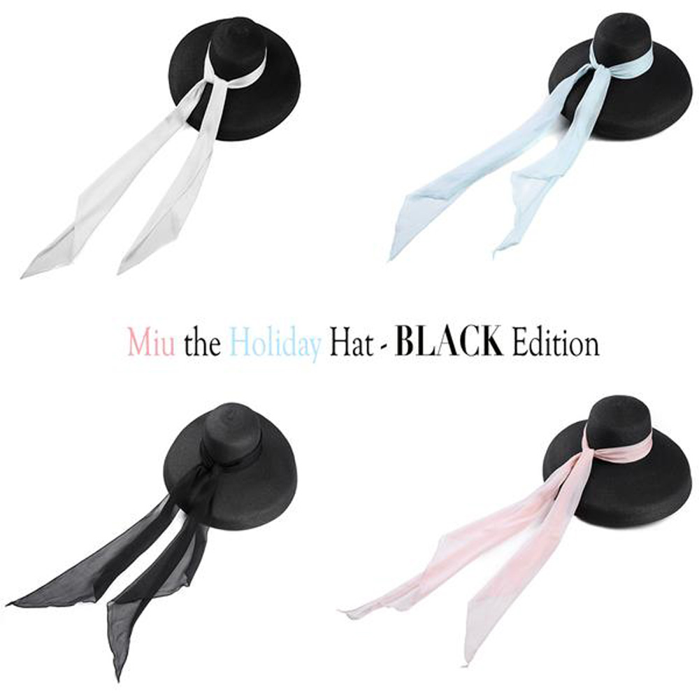 This MIU Straw hat that comes on Black with 4 different beautiful rich silk scarf accent colors, you cannot go wrong with this Audrey inspired piece.