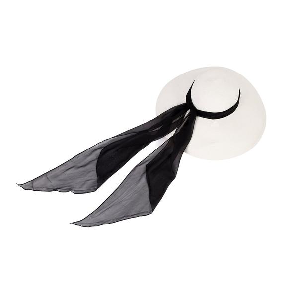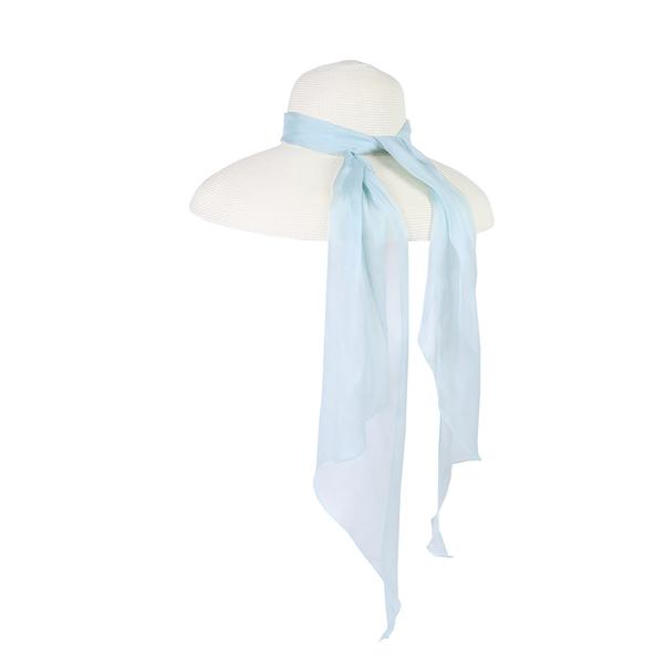 Hat is made with 100% natural, eco friendly paper straw made from bark fibres of the paper mulberry tree. Scarf is made with soft chiffon silk.
