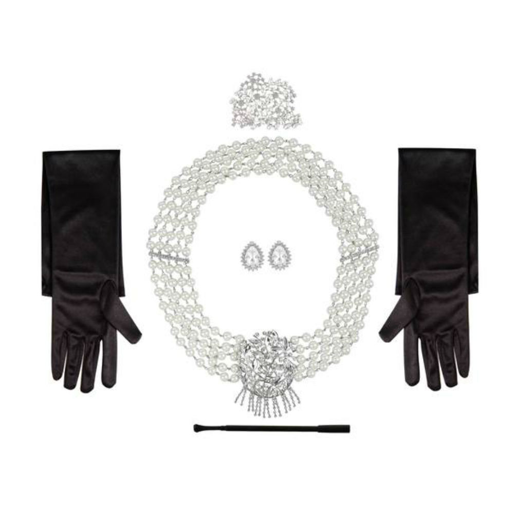 Audrey Hepburn Breakfast at Tiffany’s Premium Crystal Costume Accessories 5 Piece Set Necklace, Tiara, Earrings